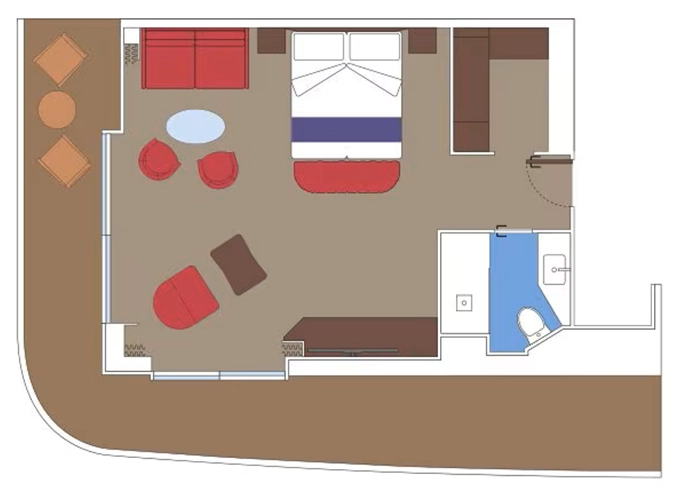 | SXJ - Grand Suite Aurea s terasou a vírivkou 35 m² + balkón od 37 m². Vírivka. 15/16. paluba. Cenový model Aurea. | 4 542 € 4 542 € za osobu |