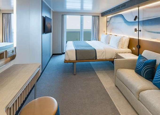 | MB - Club Suite Forward-Facing s balkónom 22 - 25 m² / balkón 7 m². 9. až 13. paluba - vpredu. Max 2 osoby. Výhody Club. | 5 218 € 2 609 € za osobu | ||
